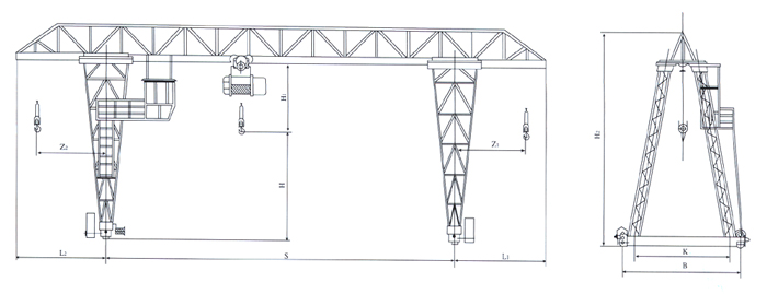 本机是与CD1或MD1型电动葫芦配套使用,适用干露天作业的固定跨间,本机禁止吊运熔化金属及易燃、易爆物品,根据用户要求还可制成单端外伸悬臂式或无悬臂式结构。
